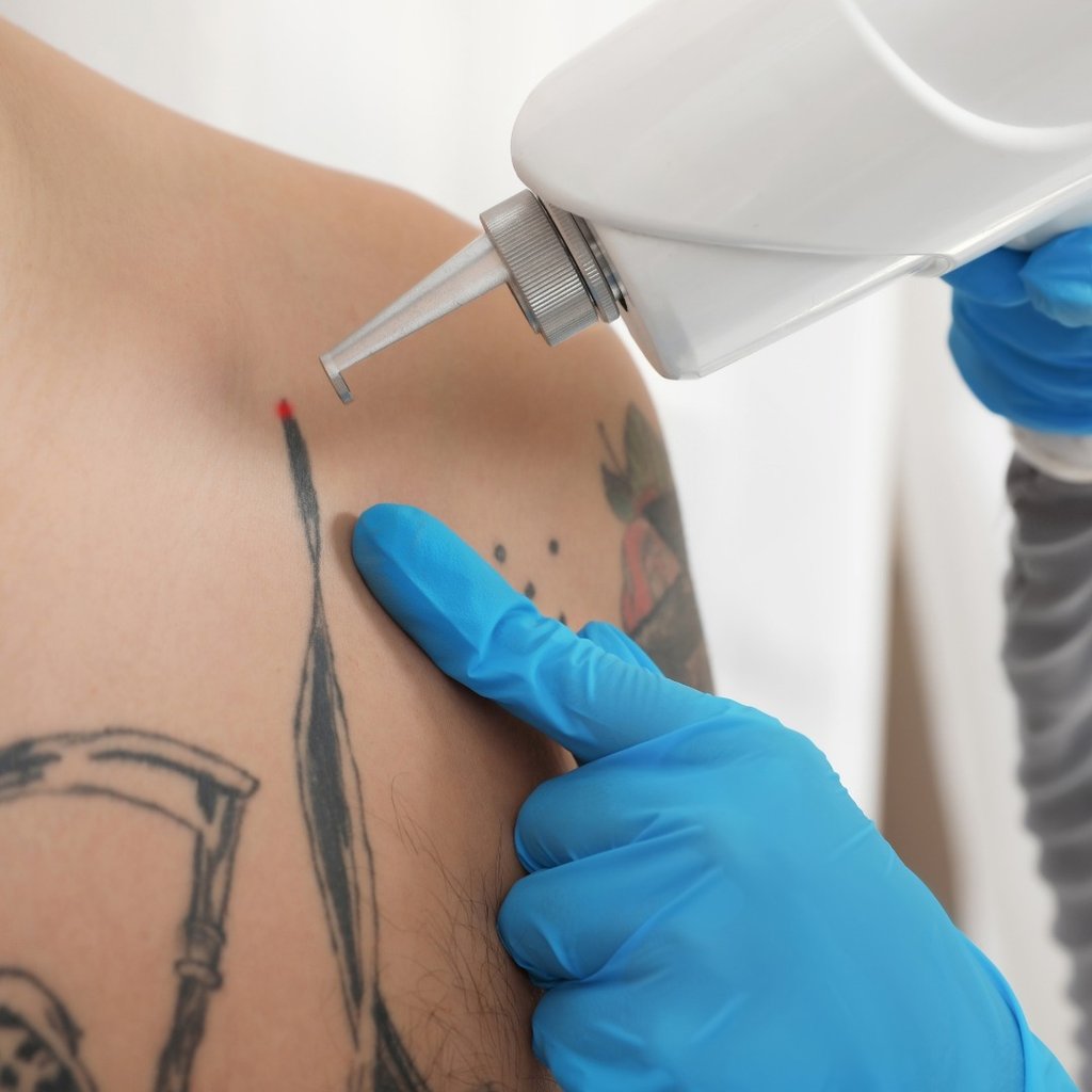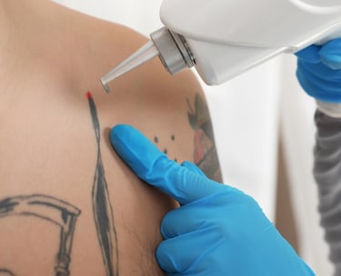 Eliminación progresiva de tatuajes mediante láser de alta potencia.