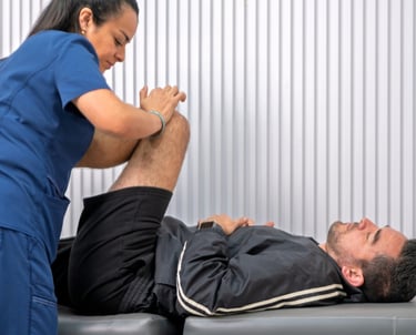 Rehabilitación física personalizada que combina terapia manual y tecnología, adaptada al paciente.